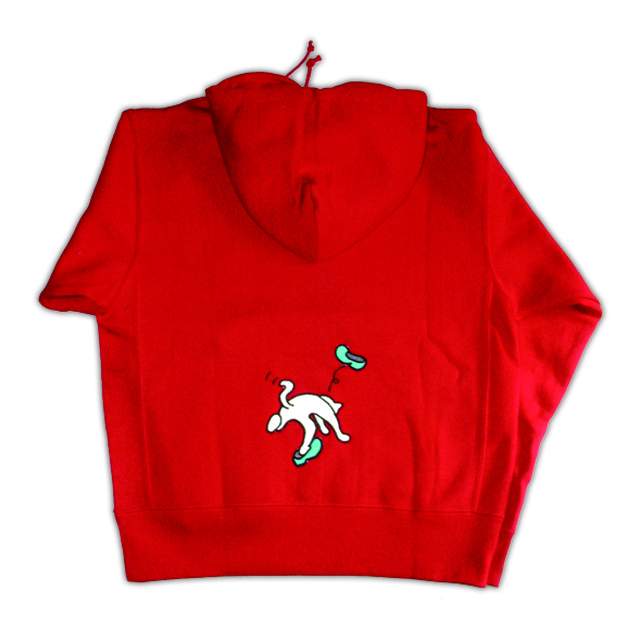 でっかい靴をはいた楽しいデザインのパーカーです。