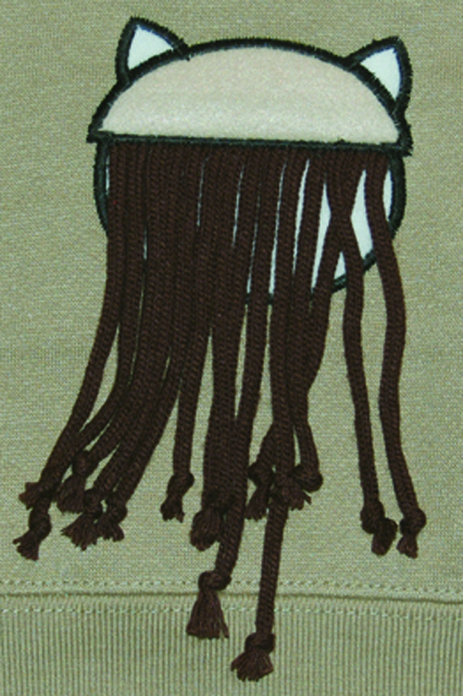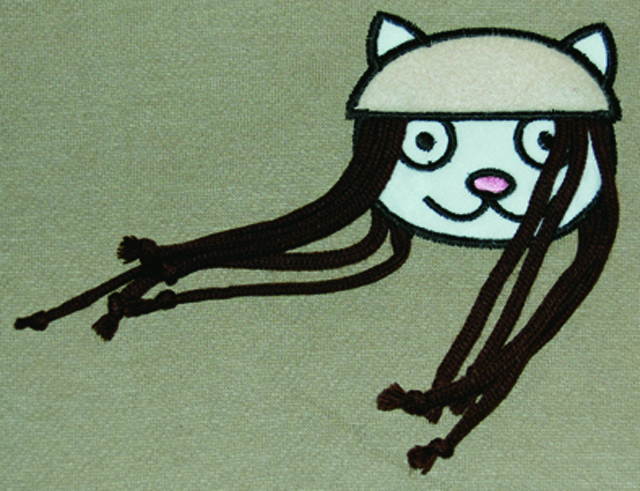ロングヘアー付きのキャラクターがはいったおちゃめなデザインです。